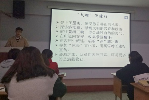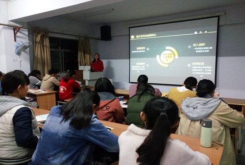 11月6日晚,外国语学院团委于院国培教室开展以“实践出真知”为主题的暑期实践报告会,院优秀实践代表郭琳琳等4人分别代表4支实践队分享实践经验成果,学院团委学生会主席团及2015、2016和2017级学生共80余人参与此次报告会。