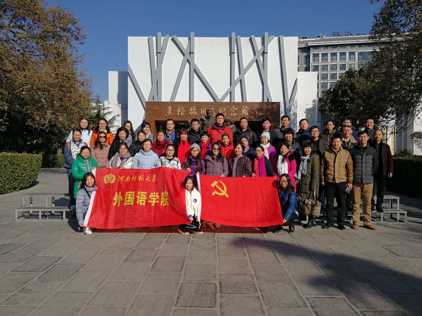 为深入贯彻落实党的十九大精神,进一步推进“两学一做”制度化、常态化,增强学院党员教工党性修养和宗旨意识,12月10日外国语学院党委组织学院党员教工赴兰考县焦裕禄纪念园、焦裕禄事迹展览馆进行参观学习。