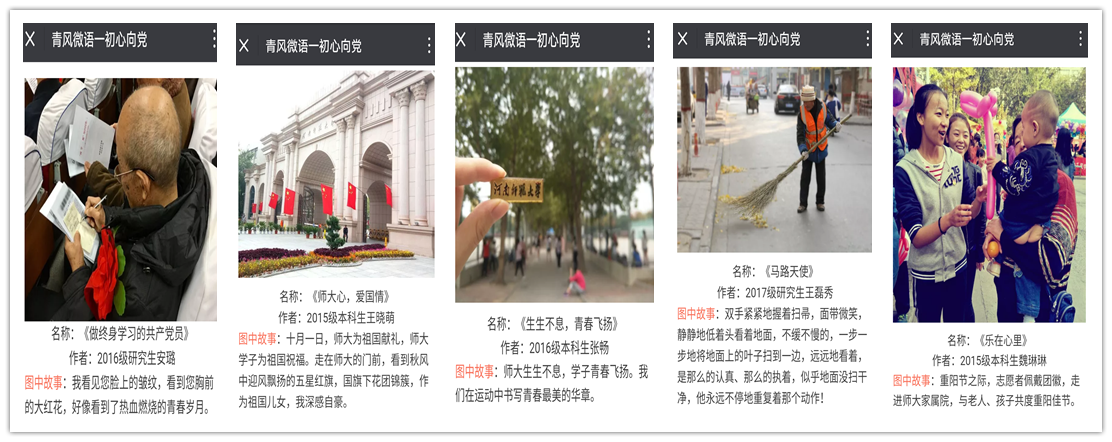 此次活动线上与线下宣传同时进行,面向全院师生征集身边具有代表性、能体现社会主义核心价值观内涵的照片。该活动得到全院师生的热情参与,共征集到照片251份。经评委老师初审和官微平台投票,最终评选出15张优秀照片在我院党委官微“青风微语—初心向党”进行推送和展览。获奖照片以小见大,通过颇具代表性的小时间来反映当代社会的精神风貌,师生们用镜头各有特色地记录了身边的文明现象,为文明留影,为文明点赞,同时也表达了莘莘学子对社会主义核心价值观的深刻感悟。此外,活动采用展板形式,辅以生动活泼的插图和详尽的文字介绍,于12月12日在外国语学院一楼大厅展示了优秀摄影作品。