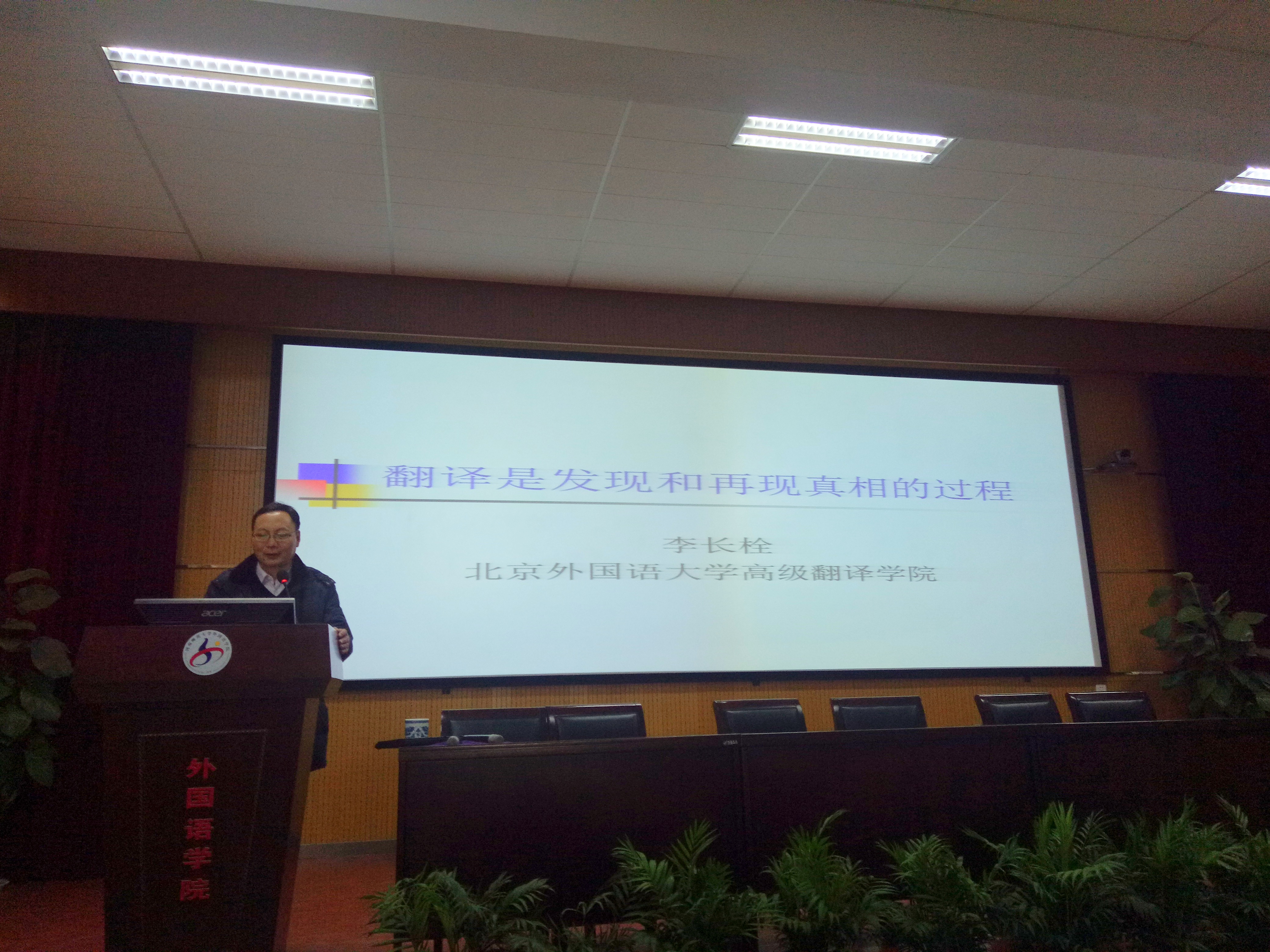 12月18日下午,应外国语学院邀请,北京外国语大学高级翻译学院李长栓教授在我院学术报告厅做了题为“翻译是发现和再现真相的过程”的学术讲座。外国语学院相关专业教师、研究生共百余人聆听了讲座。讲座由外国语学院张志强教授主持。
