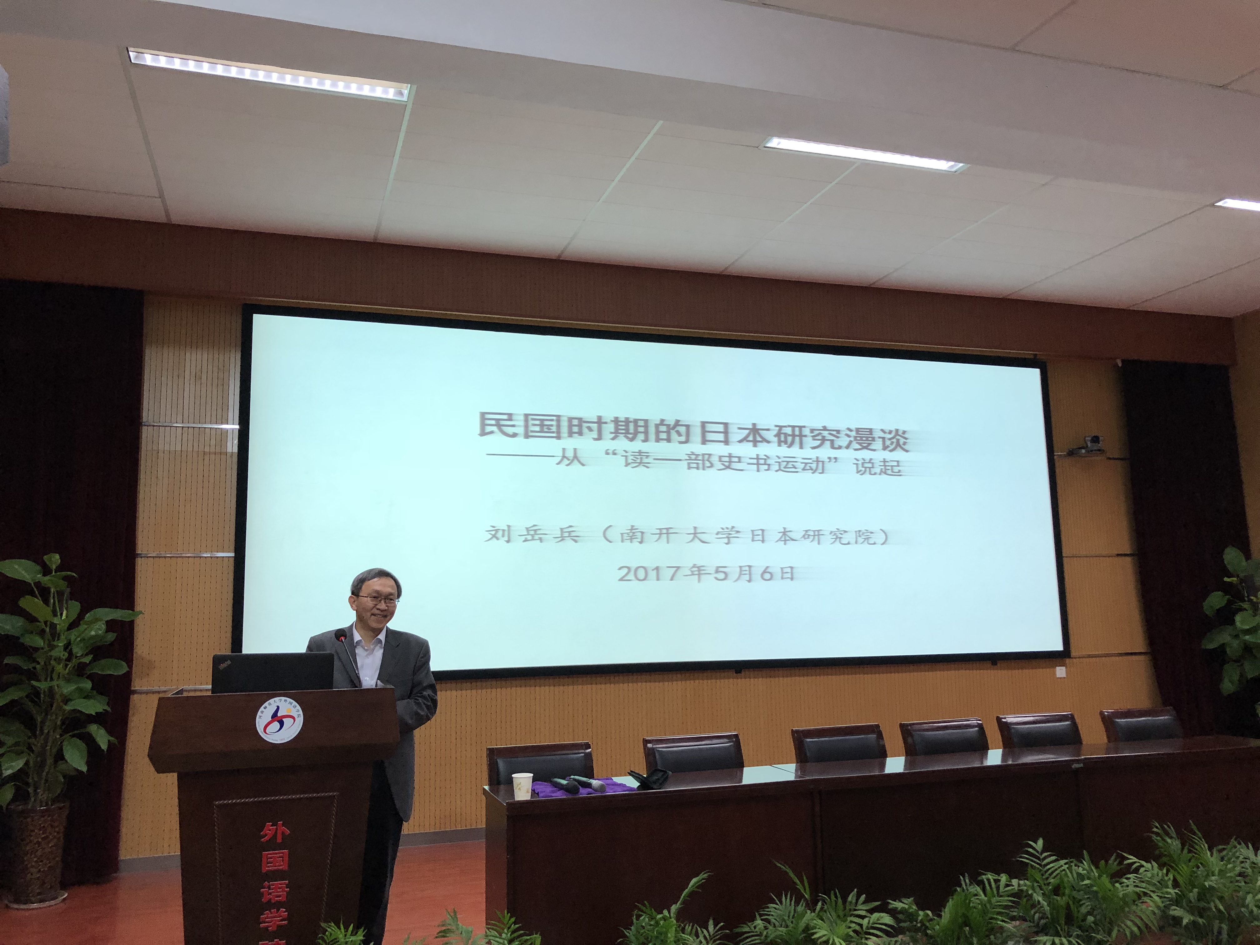 5月6日,应外国语学院邀请,南开大学日本研究院刘岳兵教授在我院学术报告厅做了题为“民国时期的日本研究漫谈——从读一部史书运动说起”的学术讲座。外国语学院相关专业教师、学生共百余人聆听了讲座。讲座由外国语学院张冬冬老师主持。