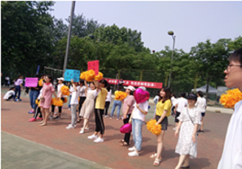 为展现奋发向上的支部形象,以英教五班、翻译二班为代表的团组织在此次排球比赛中积极动员、组织本班同学参与到拉拉队培训和训练之中。爱心气球、展板及手花成为当天比赛亮点之一,展现出团支部团结协作、勇于挑战的风采。比赛中场拉拉队的表演也极大地振奋了参赛选手的士气,赢得在场人员的阵阵欢呼