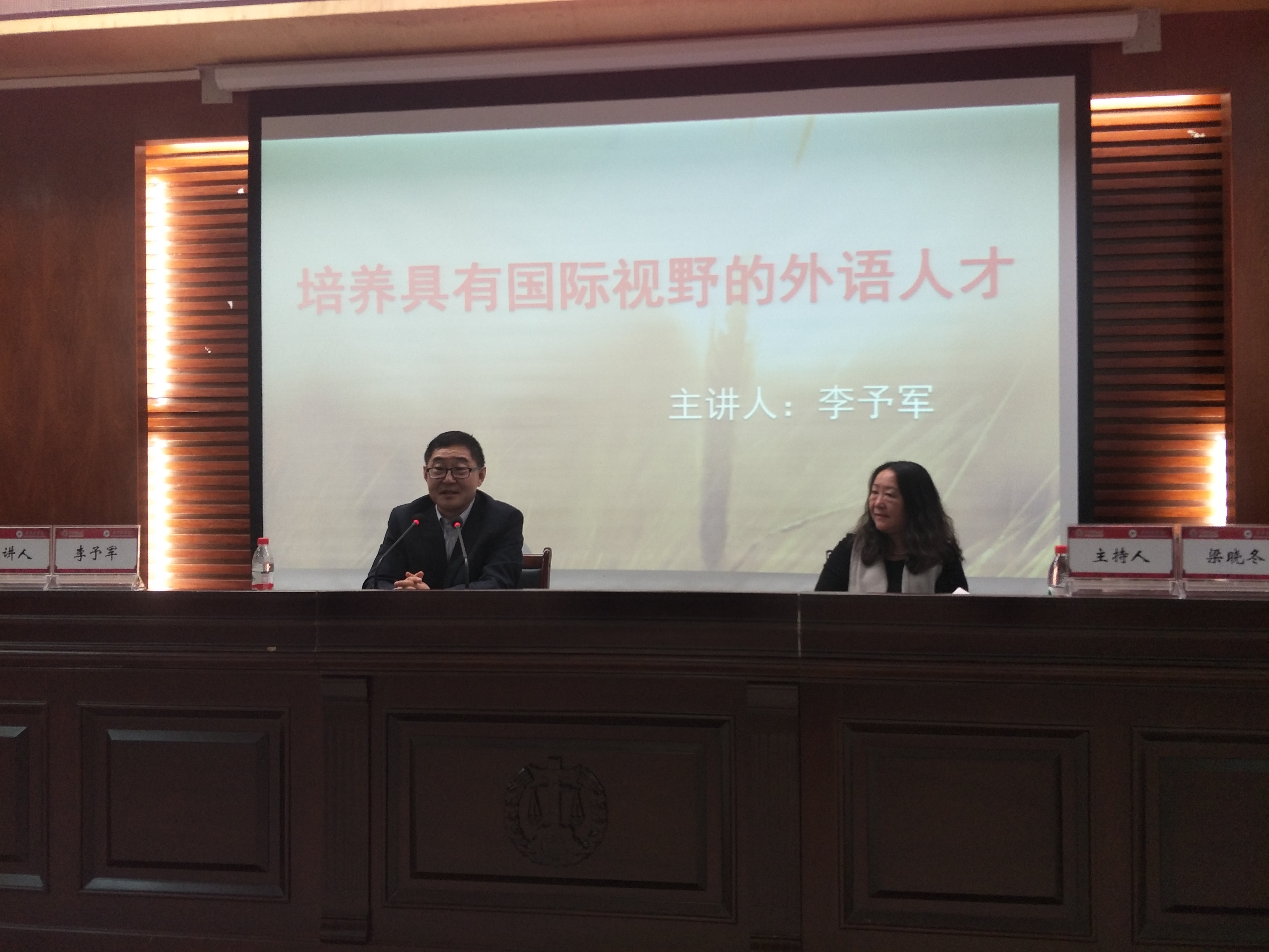 10月14日下午,北京城市学院李予军教授应邀在我校开展以“培养具有国际视野的外语人才”为主题的讲座。此次讲座由外国语学院院长梁晓冬主持,2018级辅导员与208名新生共同聆听了本次讲座。