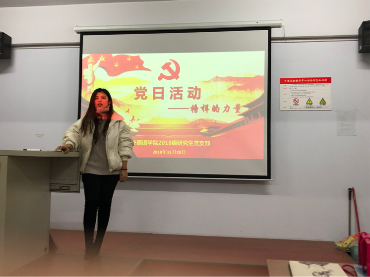 为深入贯彻落实习近平新时代中国特色社会主义思想,践行“红船精神”,开展好“弘扬爱国奋斗精神、建功立业新时代”活动,11月29日,外国语学院2018级研究生党支部开展党日活动,全体党员集中收看了《榜样3》专题节目。