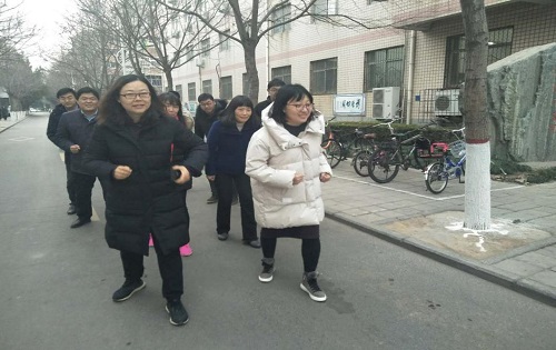 为积极备战冬季长跑比赛,力争在赛场上取得更好成绩,2018年12月24日下午,我院工会积极组织教职工进行冬季长跑训练活动。经过冬季长跑理论的学习,教职工掌握了长跑中重要的热身运动及正确的呼吸方法:长跑前首先要活动膝关节、髋关节、压腿、转体、前后踢腿;另外,要进行有节奏的深呼吸既跑三步一吸气,再跑三步一呼气,吸气要深,呼气要充分,不要大张口呼吸,要用口鼻同时呼吸(略张口)。接下来,我们将理论运用于实践,带领参赛老师们进行户外跑步训练。老师们在训练过程中,用心领会,互相交流,一次又一次、一圈又一圈的跑步练习。