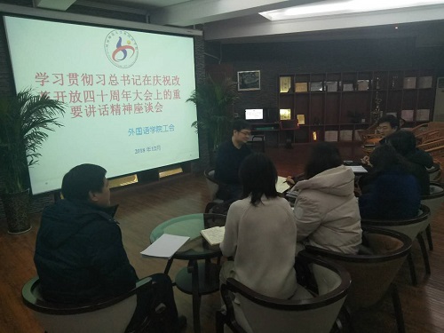 为庆祝改革开放40周年,贯彻落实全国教育大会精神,不忘教育初心,牢记立德树人根本任务,12月21日下午3:30在院二楼commonroom,我院工会委员组织开展了“庆祝改革开放40周年 走好新时代长征路”主题座谈会。