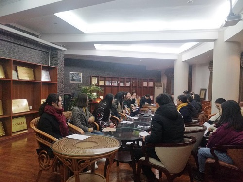 为回顾总结2015级学生的实习工作,1月14日下午,外国语学院于Common Room召开2015级实习总结座谈会。外国语学院副院长张志强、英语系主任娄宝翠以及翻译系、日语系和法语系等10位实习指导老师出席本次会议,2015级16位实习生代表积极参与。