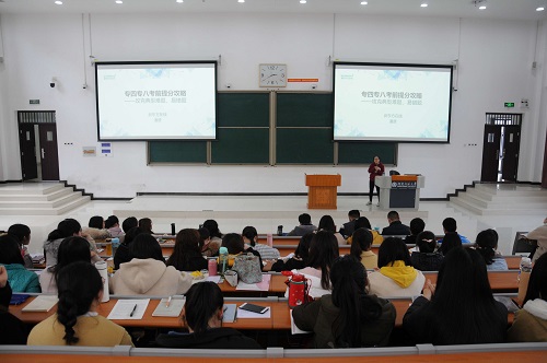 3月3日下午,外国语学院联合新东方于东区综合楼举办专四专八考前培训会。新东方在线钱硕老师、潘赟老师以及外国语学院彭典范老师受邀出席本次会议,外国语学院300余名学生参加此次培训会。
