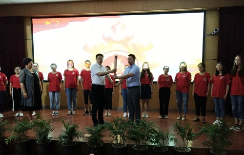仪式上,宋霞书记按照“抓规范,夯基础,严要求,创品牌,上下联动,整体推进”的思路汇报了我院党建带团建工作,以改革创新为动力,丰富党团组织活动内容和载体,教育引导青年学生敢于有梦,勇于追梦,勤于圆梦,不断增强党团组织上下联动,突出政治功能,形成党建带团建”纵向到底横向到边”的工作模式。随后,曹崇书记宣布2018级辅导员担任年级团总支书记一职,进一步推进共青团工作的民主决策与管理。接着,张良老师带领2018级团支书接过希望的火种,以“众人拾柴火焰高”的精神,奋力奔跑,以奋斗之青春放飞时代之梦想,火炬在青年人的手中传递,梦想和信念在天空中飞扬。