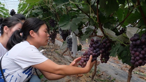 走出大棚时,调研队员早已满头大汗,而申小雨却告诉调研队员“前两天温度高,大棚里通风不好,闷热不堪,但是还是得从早忙到晚。”看着前面稳步缓行,瘦小黝黑的申小雨,心里却装着如此大的葡萄梦,实践队员不禁佩服于她的勇气与用心。