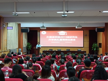 金秋九月,丹桂飘香。9月9日晚,外国语学院2019级研究生开学典礼暨导师见面会在学术报告厅隆重举行。外国语学院相关负责人及2019级全体研究生共同参会,见面会由副院长刘国兵教授主持。
