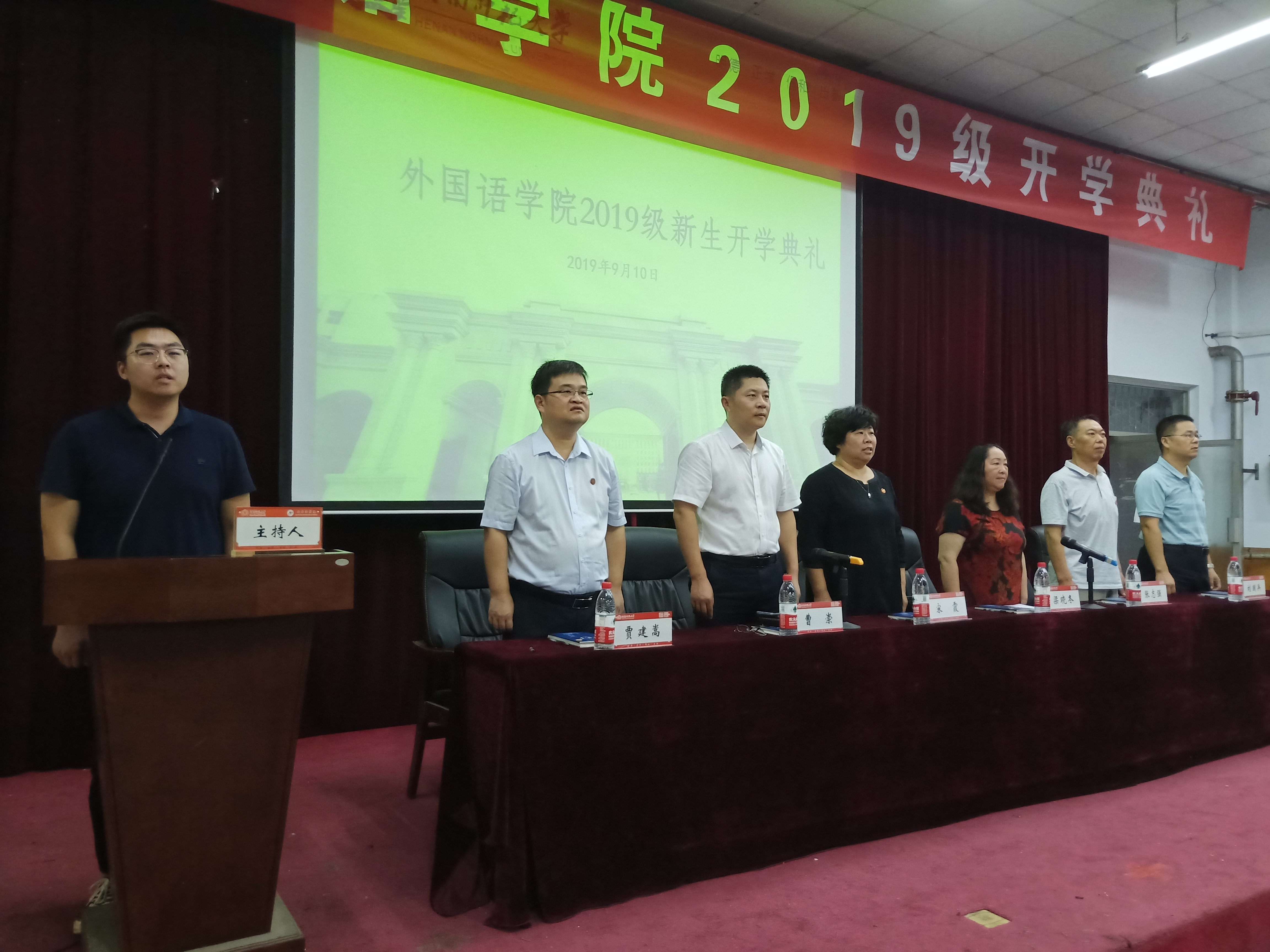 9月10日晚,外国语学院2019级新生开学典礼在校团委多功能报告厅隆重举行。学院党政领导、政工干部代表、学院全体2019级学生共同参加会议。本次会议由学院团委书记张良主持。