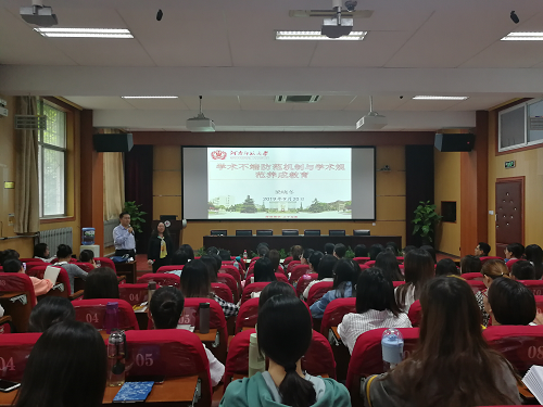 梁晓冬院长指出,学术之道,贵在诚信,求学过程中应“真求知”、“求真知”,自觉摒弃不良学风,努力打造学术精品,维护公正、透明的学术环境。她从学术规范的教育背景、何为学术不端、案例分析、学术规范养成的教育意义四个方面作了细致讲解。梁院长最后强调研究生要遵守学术红线、高压线和底线,加强学术道德建设,完善学术规范,抵制学术不端行为,时刻保持学者的清醒与自律,真正做到能学术、愿学术、懂学术。