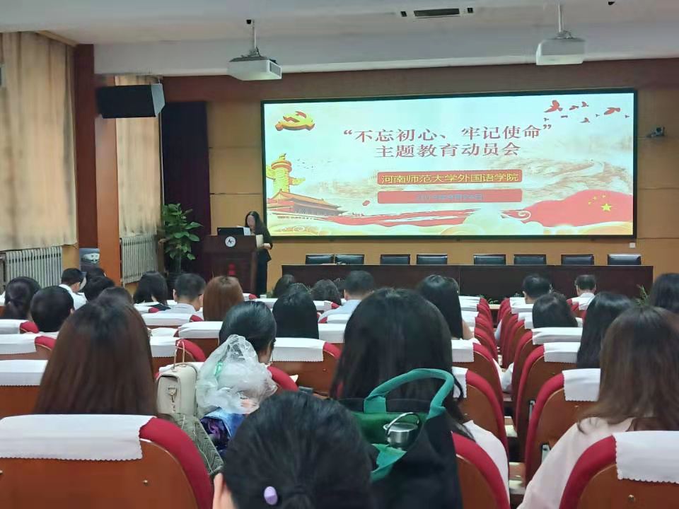 为全面贯彻落实中央、省委和校党委“不忘初心、牢记使命”主题教育工作部署, 9月24日下午,外国语学院在学院报告厅召开“不忘初心、牢记使命”主题教育动员大会,学院全体党员参加。