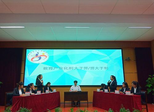 两组参赛队伍围绕“教育产业化利大于弊还是弊大于利”这一辩题展开辩论对决。比赛分为开篇陈词、指定攻辩、攻辩小结、自由辩论和总结陈词五个环节。第一环节,正反一辩你来我往,侃侃而谈,有条不紊地陈述着自己的观点。在扣人心弦的攻辩环节,双方队伍妙语连珠,毫不相让。其中,第一组反方二辩节奏性强,环环相扣,坚守己方观点,与正方二辩之间的交锋将比赛推向高潮。之后的自由辩论环节,双方辩手更是针锋相对,步步紧逼,现场气氛迅速升温,精彩不停,掌声不断。比赛结束后,评委就双方选手在赛前准备、个人气场、整体把控以及配合沟通等方面存在的问题进行了细致的点评。此次大赛一等奖四人,二等奖四人,三等奖八人。至此,思辩杯院级决赛圆满结束。