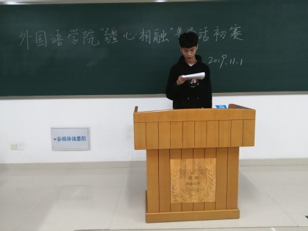 11月1日晚,外国语学院2019级“疆心相融,与你同梦”少数民族普通话演讲比赛初赛在东区综合楼113教室成功举办。此次演讲比赛以“增强民族团结,铸就家国梦想”为主题,各民族同学共同参与,同台竞技,根据演讲主题各自做了精彩演讲。在比赛中,各位选手围绕着民族大团结,谈论着自己眼中的中国,讲述着自己与祖国的故事。