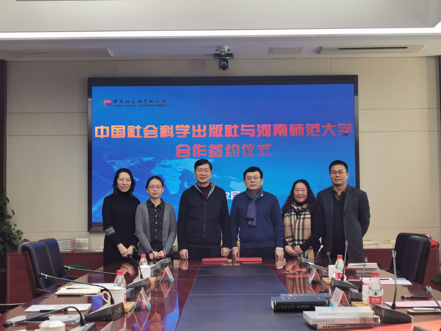 12月11日,我校与中国社会科学出版社签署合作协议仪式在北京举行。党委常委、副校长李雪山,中国社会科学出版社党委书记、社长赵剑英出席仪式并进行座谈。我校外国语学院院长梁晓冬、副院长刘国兵及中国社会科学出版社总编辑助理兼重大项目出边中心主任王茵、国际与合作出版部副主任夏侠、编辑刘凯琳等参加了座谈会。