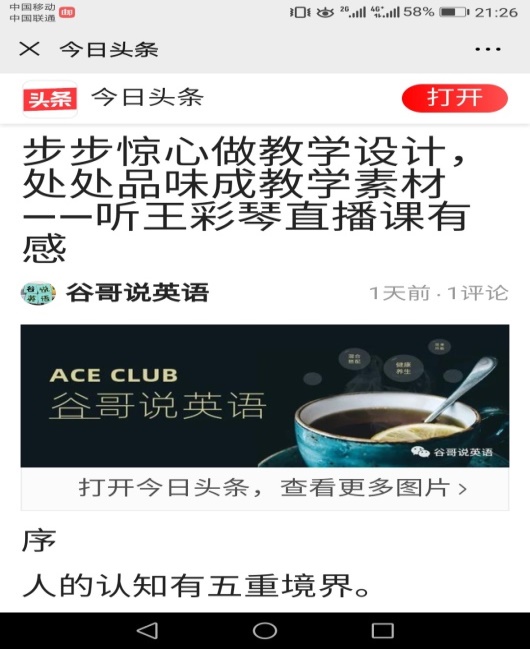 郑州十一中的谷战峰老师最快速总结了这节课带给他的所思所获,他的微信文章被《今日头条》转发: