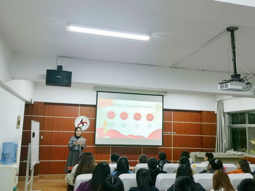 11月4日晚,外国语学院在院国培教室开展“学習者”第一期线下理论学习分享会。会议由辅导员刘晓涵主持,学院相关负责人,2019级全体学生骨干参会。