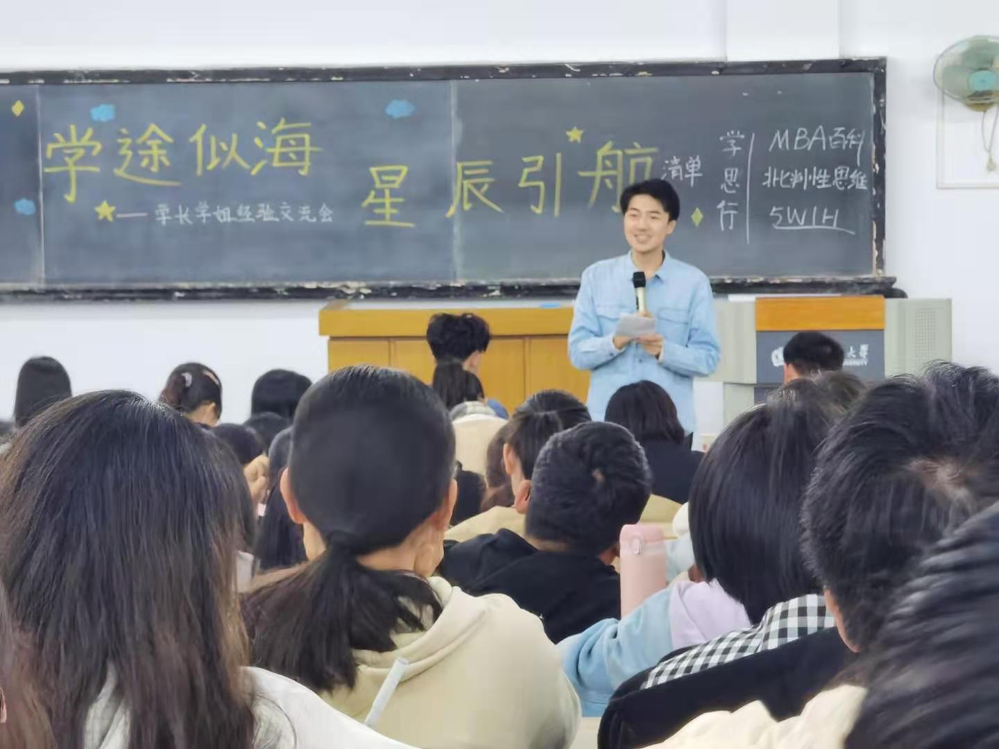 学途似海,星辰领航;行而不辍,未来可期此次经验交流会的举办,有助于同学们明确学习方向,激发学习斗志用知识的浪花推动思考的风帆,用智慧的火星点燃思想的火花更有利于促进外国语学院学风建设及顺利发展