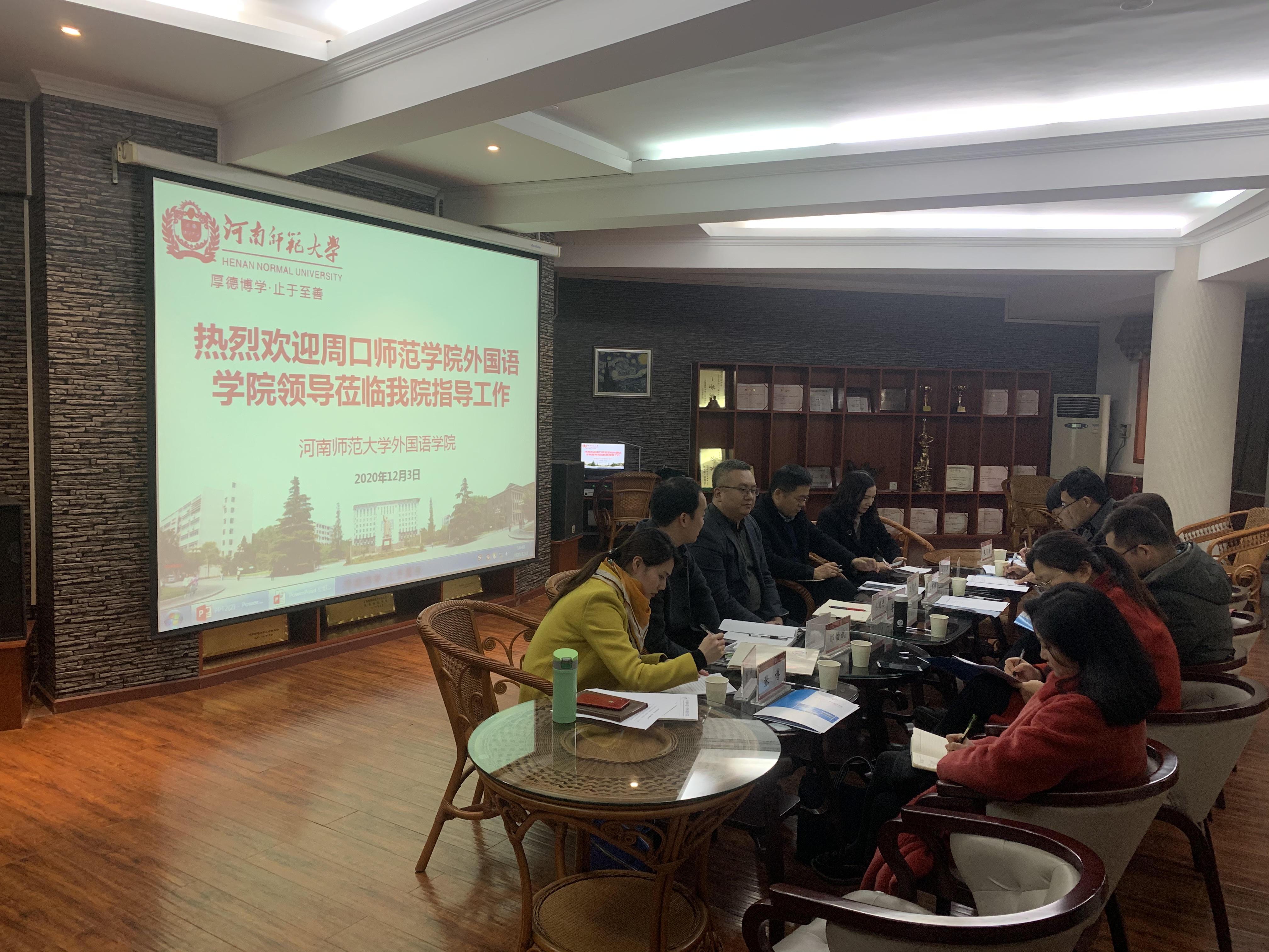 12月3日下午,周口师范学院外国语学院党委书记李珂、院长李军征等相关负责人赴外国语学院调研交流,外国语学院党委书记包晓光、院长刘国兵、副院长娄宝翠、副院长张军民、校团委副书记唐新参加此次调研座谈会。
