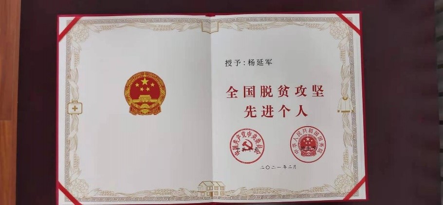 2020年1月,全省驻村第一书记进行轮换,是回市里机关上班并能照顾老人孩子,还是留在村里继续战斗?杨延军选择了后者。他动情地说:“脱贫攻坚一线是战场、是舞台,作为驻村第一书记,只有带着责任、带着感情,和群众干在一起、乐在一起,才能当好‘党代表’‘贴心人’,真正把党的好政策落到实处,赢得群众信任,增进群众感情,在小乡村成就大事业。”杨延军的事迹先后被学习强国、人民日报、光明日报、河南日报等新闻媒体报道,先后被授予“焦作市优秀驻村第一书记”“焦作市最美纪检监察人”“焦作市第十四批身边的榜样”等荣誉称号。