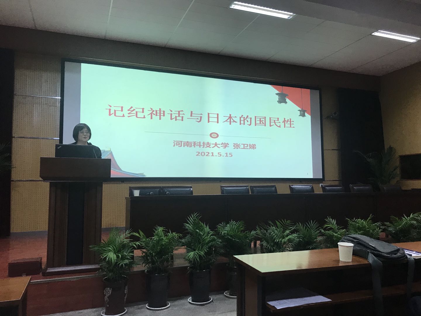 5月15日晚,河南科技大学外国语学院张卫娣教授应邀为外国语学院师生作题为“记纪神话与日本的国民性”的专题讲座。讲座在外国语学院报告厅举行。学院专业教师、本科及研究生共计百余人参加了讲座。