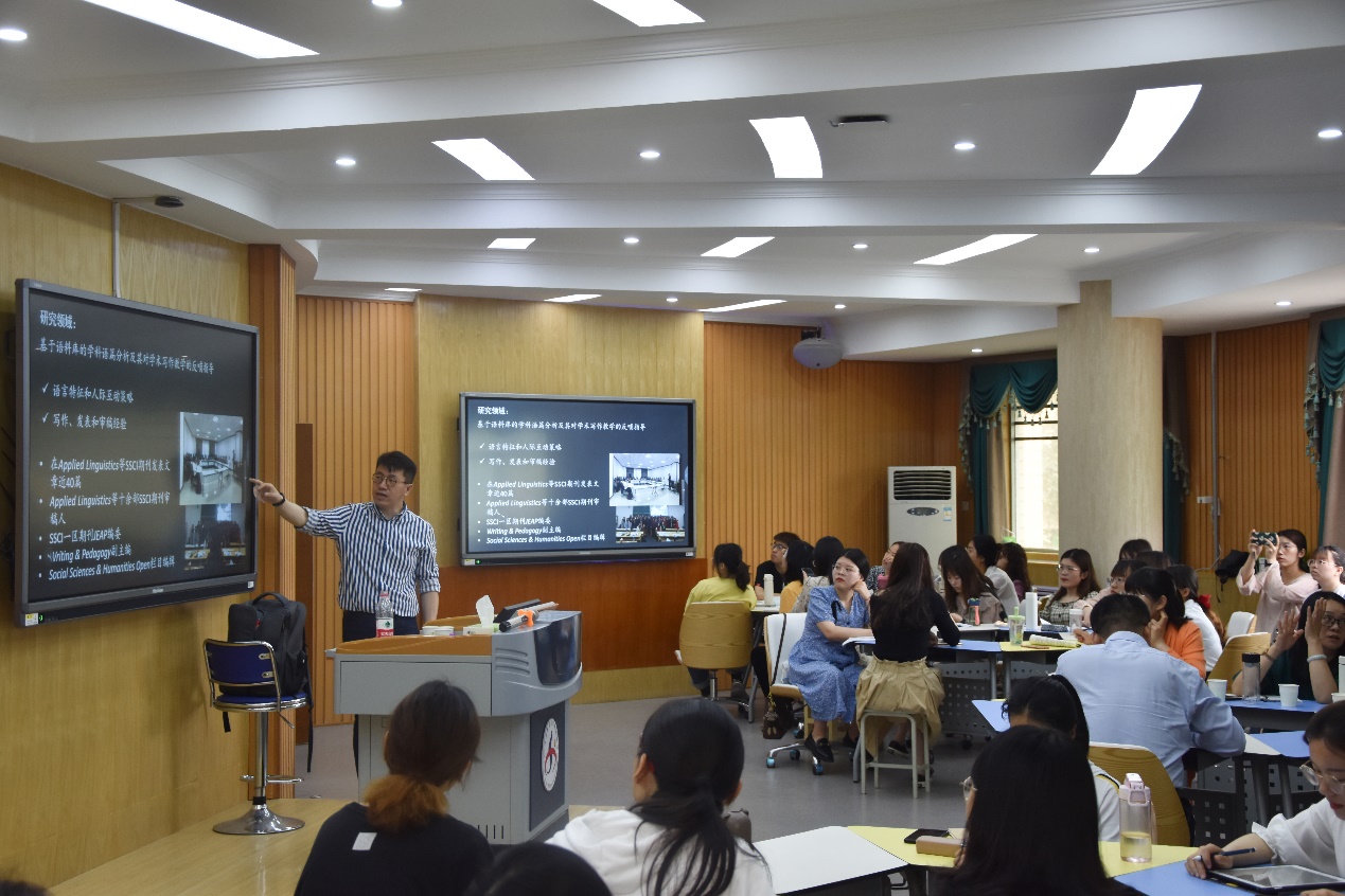 5月20日上午,应外国语学院邀请,吉林大学公共外语教育学院副院长,匡亚明特聘教授,博士生导师姜峰教授在外语楼智慧教室讲学,学院有关学科负责人、青年教师、研究生等六十余人聆听了本次报告,会议由学院院长刘国兵教授主持。