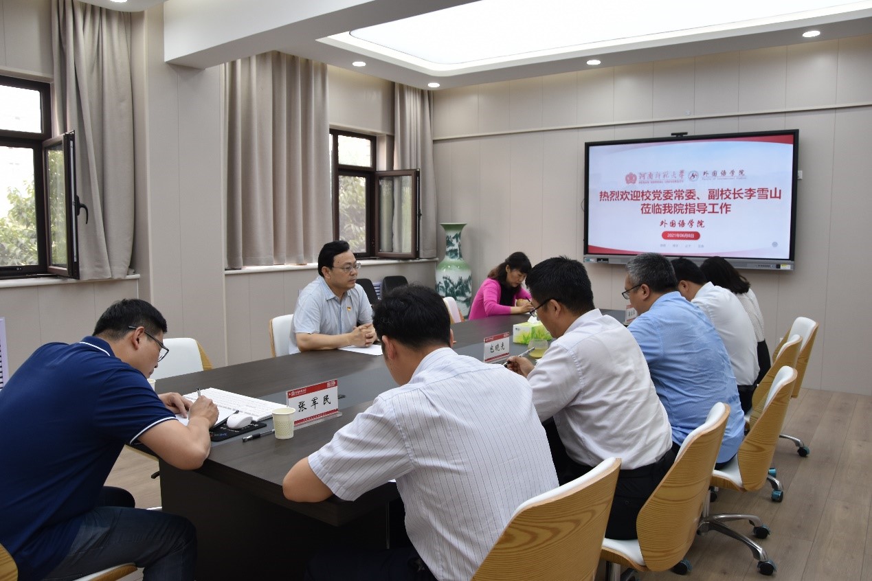 6月8日下午,校党委常委、副校长李雪山到外国语学院调研指导工作。学院党政领导班子和相关负责人参加了调研座谈。