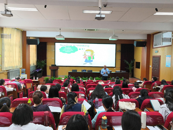 活动伊始,上海外国语大学郑新民教授作了题为“英语阅读的方法:寻脉络,抓观点,思道理”的学术报告。郑教授从为什么要阅读,什么是阅读,怎样进行阅读教学,什么是教师认知等方面为在场师生进行了详细讲解,强调教师要用提问的方式让学生从低级思维方式发展到高级思维方式,从而培养学生的思维能力。随后中山大学区鉷教授、河南省特级教师、河南省中原名师郝爱荣老师、新乡市第一中学王洁荣老师、伟德官网下载苹果版附属中学高级教师陈龙、胡玉亮、臧绍民三位老师、新乡市三十中学郭华伟老师等多位专家分别上台为我院师生作了学术报告(系列讲座活动安排见附件1)。各位专家与在场师生进行了热烈的互动,对提出的问题进行耐心细致地解 答,在场师生均受益匪浅。