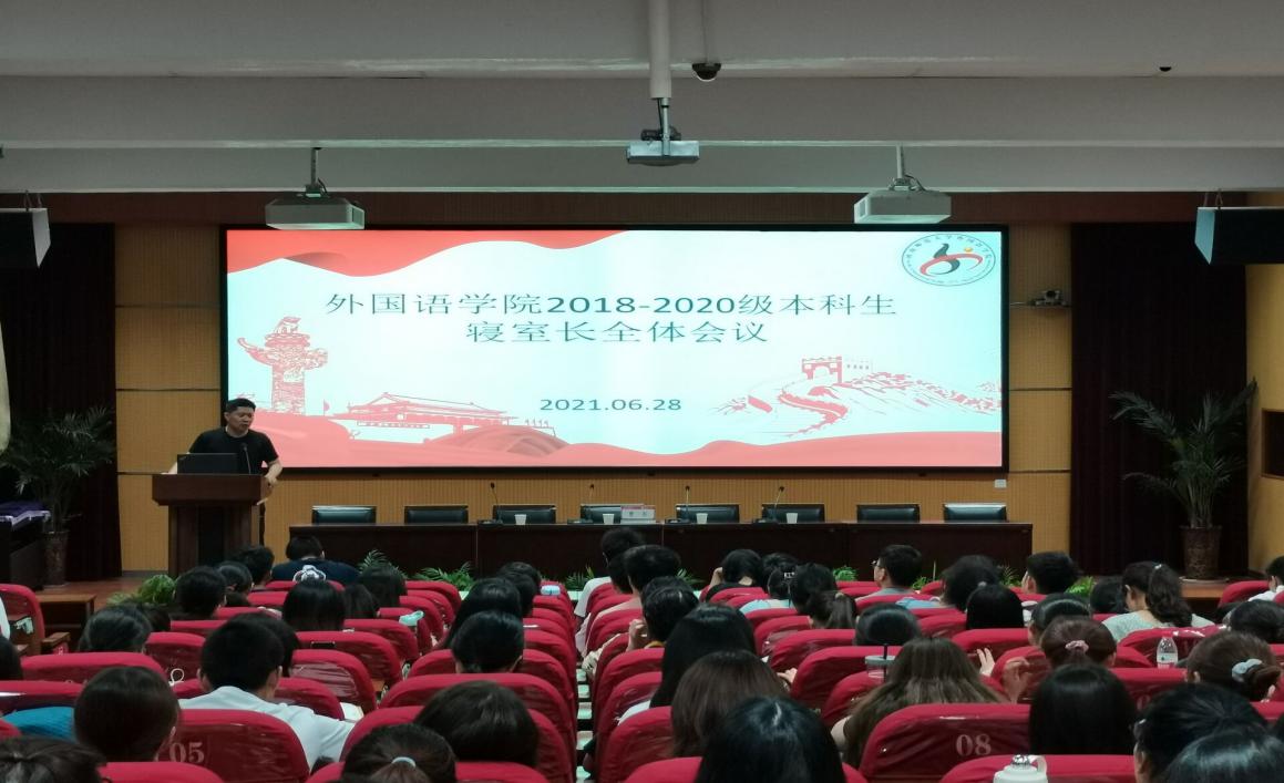 为进一步锻炼和塑造能力强、思想正、作风硬的学生寝室长队伍,切实发挥寝室长在学生寝室生活中的重要作用,6月28日晚上,外国语学院于外院报告厅举办2018-2020级本科生寝室长全体会议,学院党委副书记曹崇老师、团委副书记张良老师出席此次会议,全体在校本科生寝室长均准时参会。