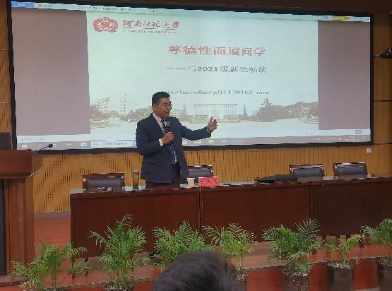 最后,崔教授强调习近平总书记“植根于中华大地般的教育”的嘱托,希望全体新生做好规划、牢记使命,将中华文化里关于诚信等传统美德印刻在骨子里。
