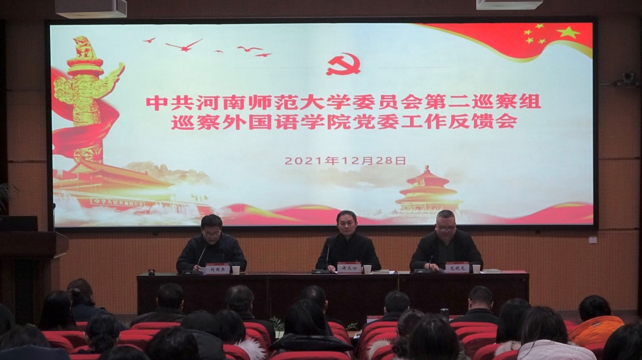 12月28日下午,按照校党委巡察工作安排,校党委第二巡察组向外国语学院反馈巡察工作。巡察组组长许天心、巡察组成员、外国语学院领导班子及教职工参加会议。本次会议由外国语学院院长刘国兵主持。