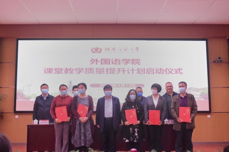 启动仪式上,外国语学院院长刘国兵宣读了《外国语学院课堂教学质量提升计划实施方案》,并介绍了“青年教师教学导师制项目”“外语课程思政建设项目”等7项活动内容。他指出,外国语学院将以课堂教学改革作为人才培养改革的切入点和突破口,立足专业人才培养目标,营造课堂教学创新氛围,推动外语课程教学内容供给侧改革,加强教师教学能力培训,重塑课堂教学生态,切实提升外语课堂教学质量。为确保方案顺利实施,学院将进一步提高政治站位,狠抓政策落实,成立教师教学能力提升工作领导小组,根据学校政策和外语学科专业特点,认真组织实施课堂教学质量提升计划。“十四五”期间,学院将加大经费支持力度,强化过程性考核,做到“工作到位、讲求实效、不走过场”,努力为学院的高质量发展奠定基础。