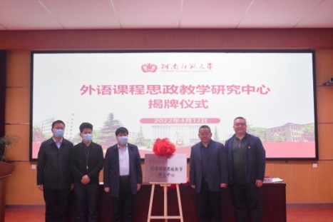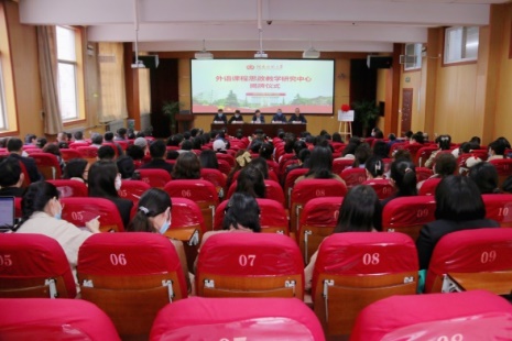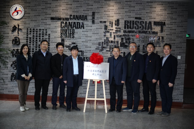 郭海明副校长、聂国兴处长和王君健主任共同为研究中心揭牌。郭海明副校长为研究中心的成立表示祝贺。他在讲话中指出,全面推进高校课程思政建设是落实立德树人根本任务的重要举措,外语学科肩负着为国家建设输送高水平全球治理人才的重任,用外语讲好中国故事是新时代外语人的重要使命,外国语学院率先成立外语课程思政教学研究中心与新时代高等教育发展需求高度契合。他希望研究中心在育人大格局中勇树标杆,发挥好引领示范作用,深入挖掘外语课程思政的内在规律,系统构建思政教育与专业教育同向同行的人才培养新模式,实现注重价值塑造、知识传授和能力培养的深度融合。