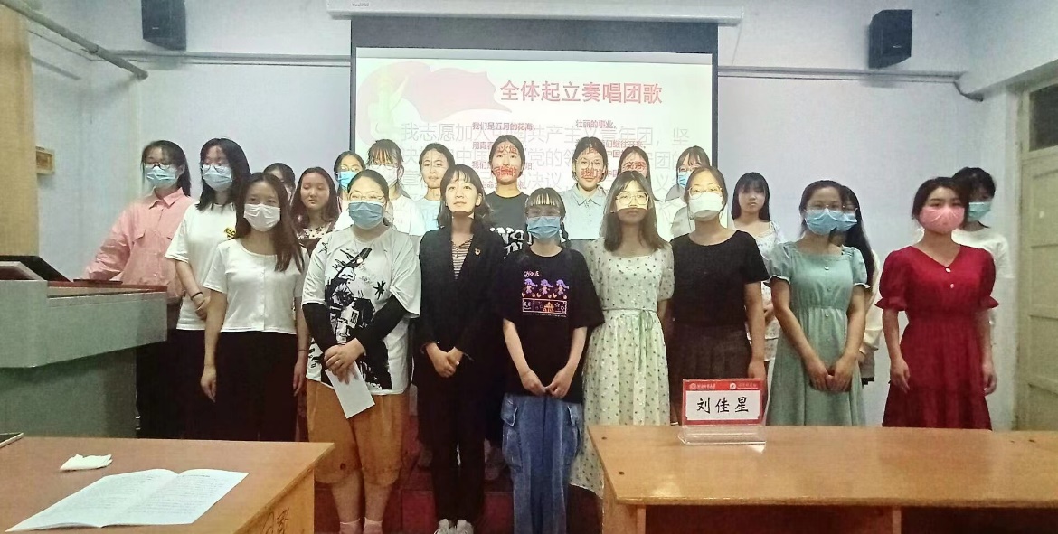 活动伊始,参会人员共同重温入团誓词,回忆入党初心。大家起立共唱团歌,朗诵红色诗篇。之后,团委负责人刘佳星老师发言,她带领青年团干回顾百年来共青团走过的光辉历程,从1919年五四运动到1920年共青团的诞生,从1922年共青团第一次代表大会到1949年共青团第一次全国代表大会,中国共青团跟着党在前进中不断发展壮大,永远跟党走;团学干部应担当尽责,牢记使命,始终成为组织中国青年永久奋斗的先锋力量。最后,由同学对学习材料进行感悟分享。活动结束后,主持人对活动内容进行了总结:中国青年是中国特色社会主义事业的中坚力量,青年要坚持跟随中国共产党的脚步,始终成为组织中国青年永久奋斗的先锋力量。