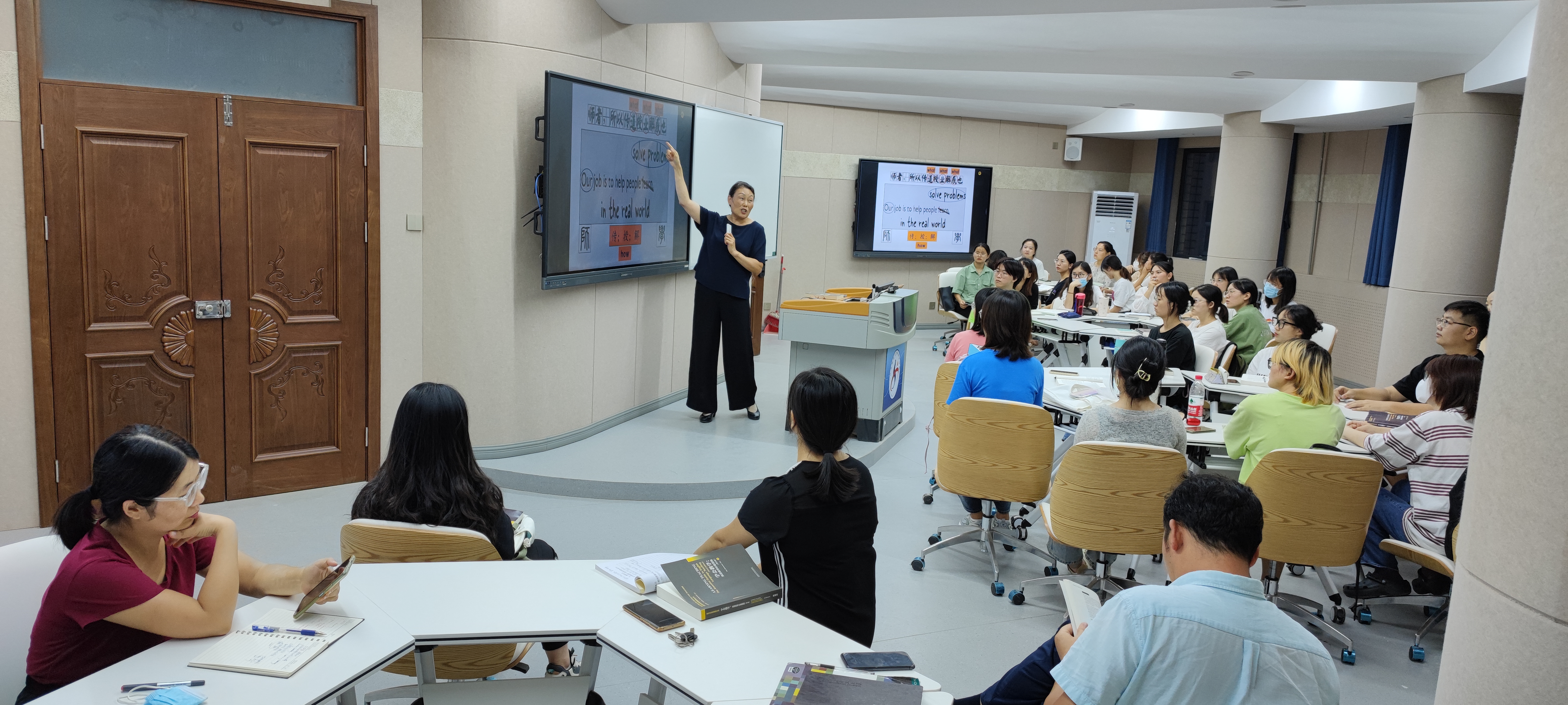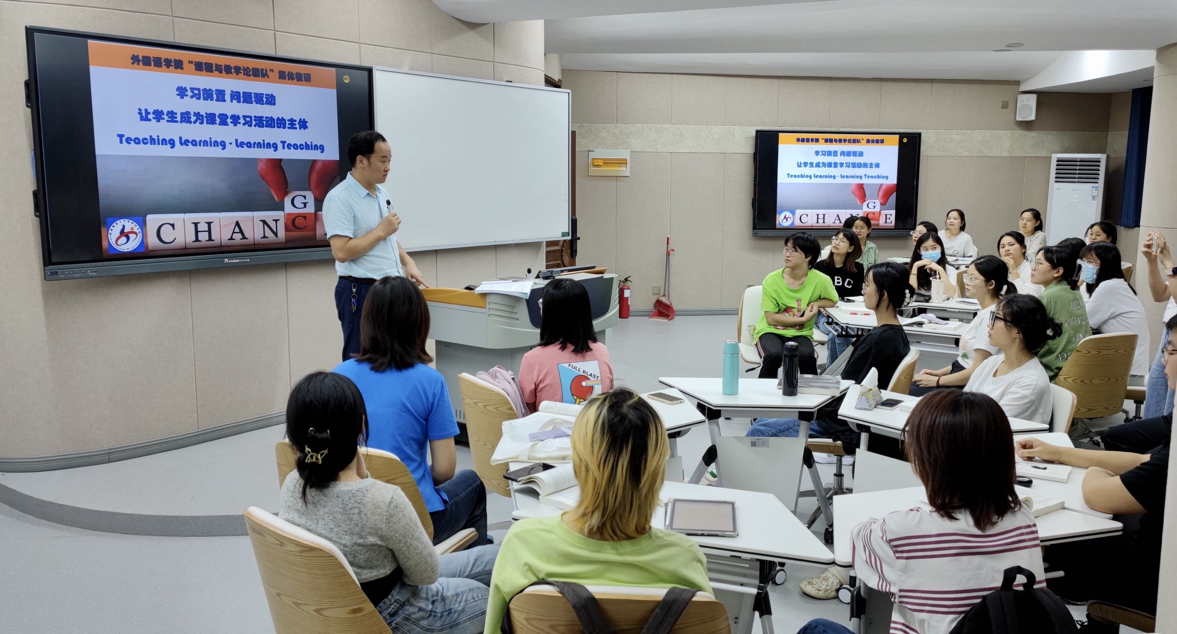 9月15日,外国语学院“课程与教学论”团队与学院青年教师、研究生及本科生代表在学院四楼智慧教室开展“大教研”活动。参与本次活动的有张军民副院长、王彩琴教授、王晔副教授、金莉副教授、刘丽娟副教授、孟凡娜老师、卢星老师以及2020级和2021级本科生和研究生代表。