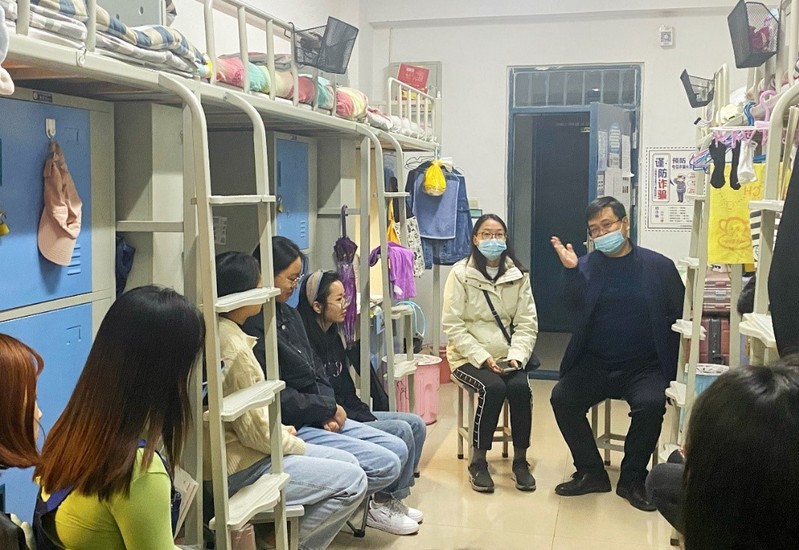 校工会办公室主任贾建嵩走访联系学生宿舍