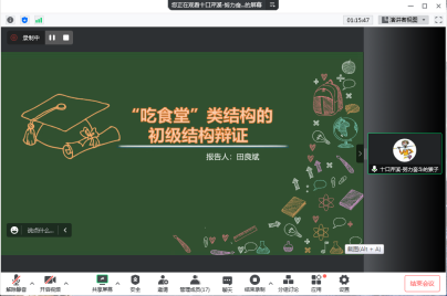 为促进学院内部学术交流,加速经验传递和增进学院教师学术水平,11月23日,外国语学院青年教师博士论坛系列讲座第五讲如期举行。学院新引进教师田良斌博士在线作了题为“‘吃食堂’类结构的初级结构辩证”的学术讲座。百余名校内师生及省内外部分兄弟院校师生参会聆听。讲座由孙海燕教授主持。