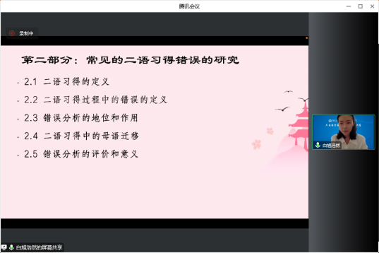 为促进学院内部学术交流,加速经验传递和提高学院教师学术水平,12月1日,外国语学院青年教师博士论坛系列讲座第七讲如期举行。学院新引进教师白旭浩然博士在线作了题为“跨文化交际中的语言文化错误——以俄汉语为例”的学术讲座。百余名校内师生及省内外部分兄弟院校师生参会聆听。讲座由贾淑月博士主持。