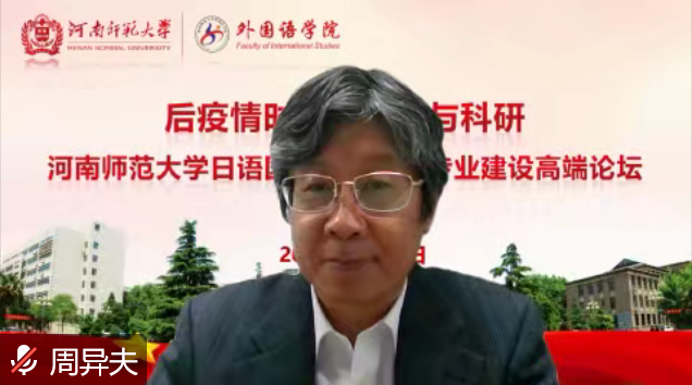 北京外国语大学日语学院院长周异夫教授在作为受邀专家之一在开幕式中致辞。他对伟德官网下载苹果版外国语学院本届高端论坛的举办致以祝贺,同时对我院日语专业常年来的人才培养和成果积累做出肯定并对今后更好的发展寄予殷切期望。他指出,在全国500多所日语本科高校的建设中,一些院校具有相当的特色,并取得了较好的成绩,本次论坛,来自这些院校的各位专家学者齐聚一堂,提出日语专业发展的建设性意见,具有非凡的积极意义。他强调,日语专业的建设重点突出为“教学”与“科研”,而本次论坛主题设定为“后疫情时代的教学与科研”,全面涵盖这两大层面,将其有效结合才能引领日语学科建设更上一个台阶。他希望,外国语学院通过举办本届论坛,能够与各位日语专家学者开展全方位、宽领域、多层次的合作与交流。