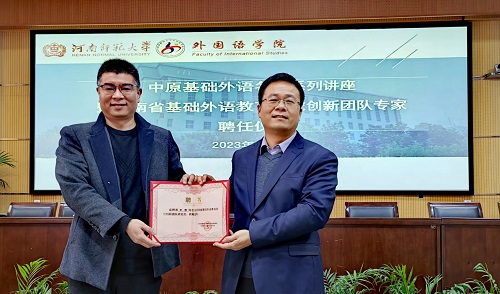 外国语学院院长刘国兵教授首先致辞。他指出,大学因名师而充实,举办中原基础外语名师系列讲座是学院携手中原名师助力教育硕士培养,推动英语学科建设的重要举措。刘国兵教授为李哲老师颁发了河南省基础外语教育研究创新团队研究员聘书,该创新团队是在与中小学长期合作基础上形成的协作研究共同体,是学院“十四五”期间重点培养的研究创新团队。