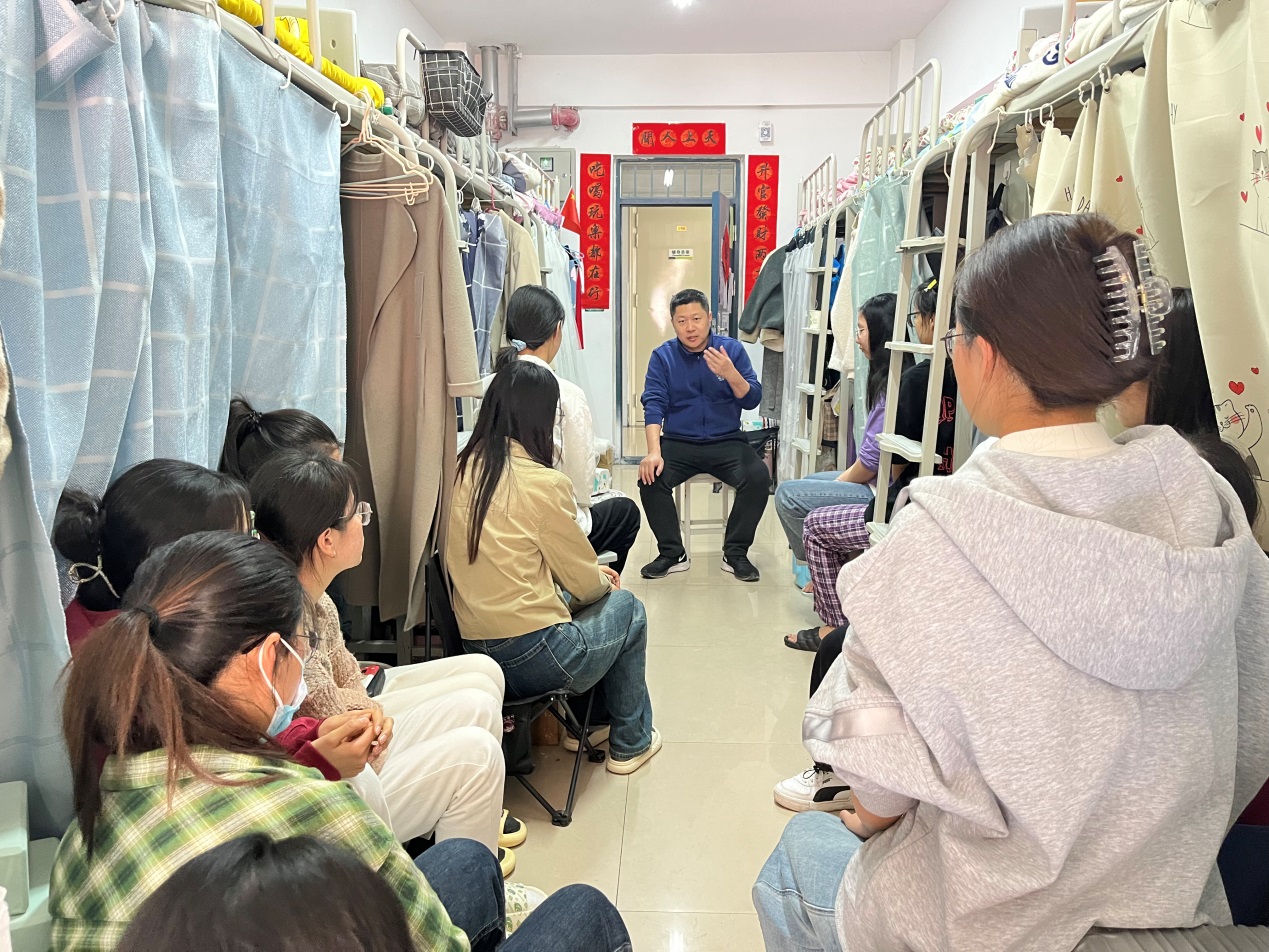 3月7日下午,外国语学院党委书记赵成福、副书记曹崇、2019级专兼职辅导员深入学院毕业生宿舍进行谈心谈话,开展2023年春季开学思政第一课活动。
