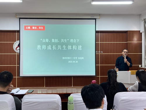 4月20日下午,应外国语学院邀请,全国基础外语教育研究培训中心特聘专家、河南省首批基础教育教师培训基地首席学科专家、郑州市第十一中学谷战峰老师在外国语学院国培教室作了“‘众筹集创共生’理念下教师成长共生体构建”的学术讲座。讲座由赵攀副教授主持,我院部分教师和2022级教育硕士研究生80余人聆听了此次讲座。