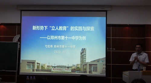 5月19日,应外国语学院邀请,中原教学名师、郑州市第十一中学副校长弋松伟老师在外国语学院国培教室作了“新形势下‘立人教育’的实践与探索——以郑州市第十一中学为例”的学术报告。报告由王彩琴教授主持,学院教师及教育硕士研究生80余人聆听了此次讲座。