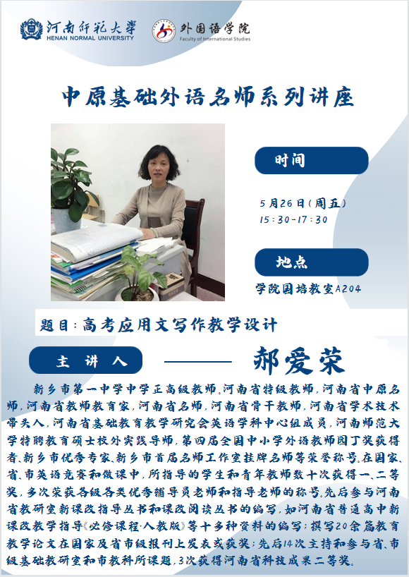 中原基础外语名师系列讲座(预告):高考应用文写作教学设计-—新乡市第一中学郝爱荣
