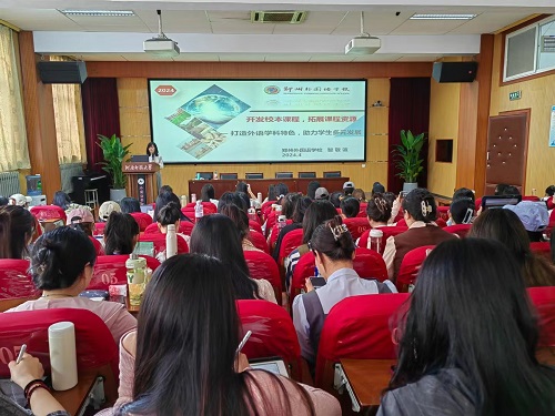 4月25日上午,应外国语学院邀请,中原名师、河南省教师教育专家、郑州外国语学校外语组教研组长智敬谊老师在外国语学院报告厅作了题为“开发校本课程,拓展课程资源”的学术讲座。讲座由聂鑫琳副教授主持,我院部分教师和教育硕士研究生100余人参会学习。