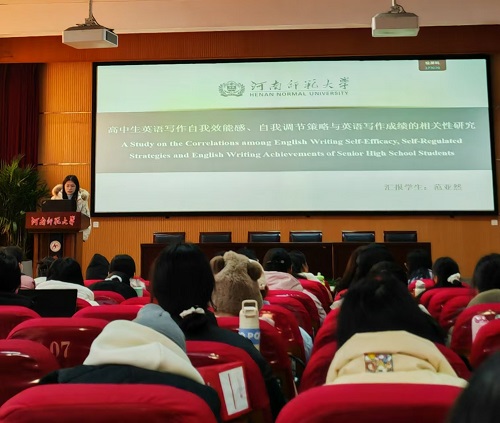 范亚然同学以《高中生英语写作自我效能感、自我调节策略与英语写作成绩的相关性研究》为题。调研剖析揭示自我效能感为写作动力源,催生积极态度;自我调节策略如导航,助规划、监控写作。提升二者水平可破写作僵局,促成绩跃升、能力蜕变,为写作教学优化注入心理动能。