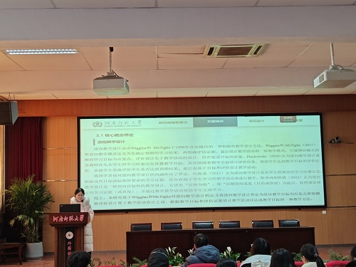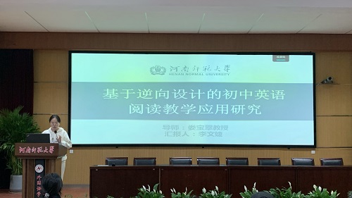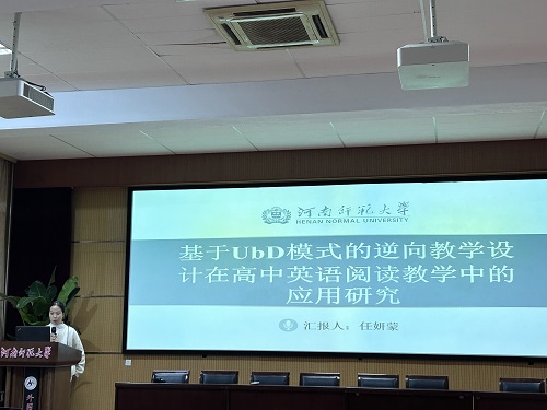 王菲同学以《逆向教学设计应用于高中英语阅读教学中的行动研究》为题,探讨了逆向教学设计的理论基础、核心概念、国内外研究现状以及具体的研究设计,旨在评估逆向教学设计对提高高中生英语阅读兴趣、阅读策略运用和阅读成绩的影响,以期为高中英语教学提供新的视角和方法论支持。她指出,逆向教学设计通过从预期学习结果出发,是从学生的学习成果出发,逆推教学活动,再逆推至学生已有的学习经验,引导教师结合课标,紧扣学科核心素养思考学习的结果和评价标准,落实学生的核心素养。