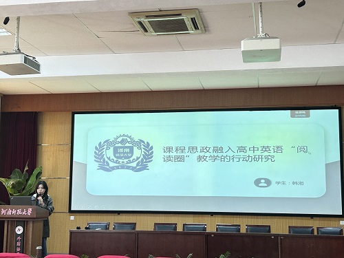 韩湘同学以《课程思政融入高中英语“阅读圈”教学的行动研究》为题,分享了如何在“阅读圈”中融入课程思政元素,以及这种融合对学生能力的影响。她强调了《新课标》提出的英语课程育人功能,指出了当前英语阅读课程思政存在的问题,并介绍了“阅读圈”教学法在提升学生阅读素养和思想观念方面的作用。研究基于输入和输出理论、全人教育理论和社会文化理论,通过测试法、行动研究、问卷调查法和访谈法,分析了课程思政融入“阅读圈”教学的不同环节及其对学生英语语言能力、思想道德品质和价值观的影响,旨在为高中英语教师提供新的教学方法和理论支持。